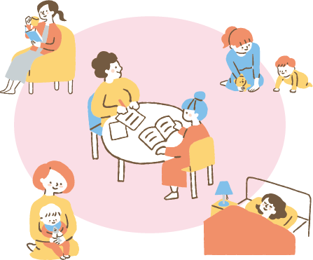 リアルスペース「ママコロ広場」を中心に、妊娠〜更年期に至るまで、女性の生涯にわたってココロとカラダをサポートします。